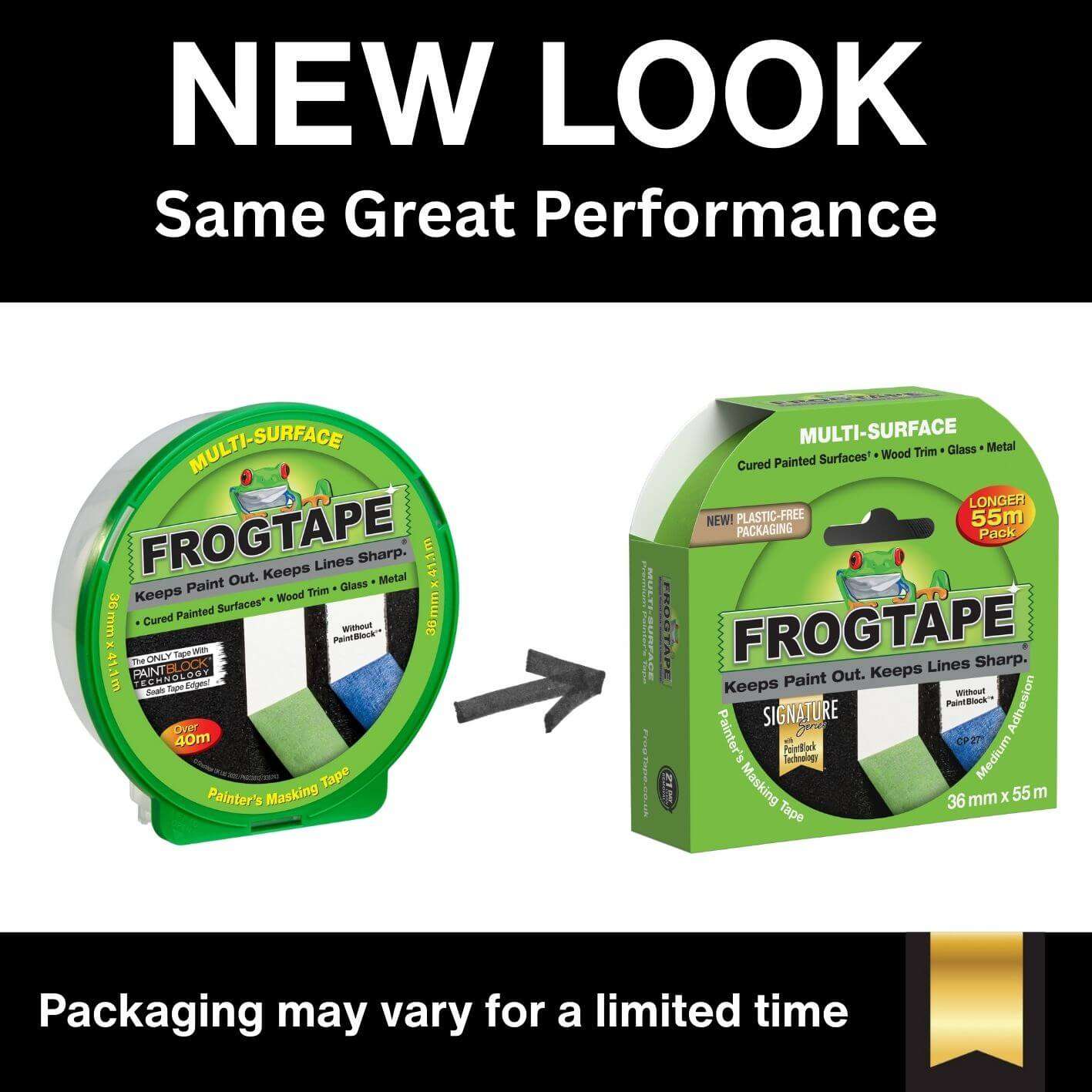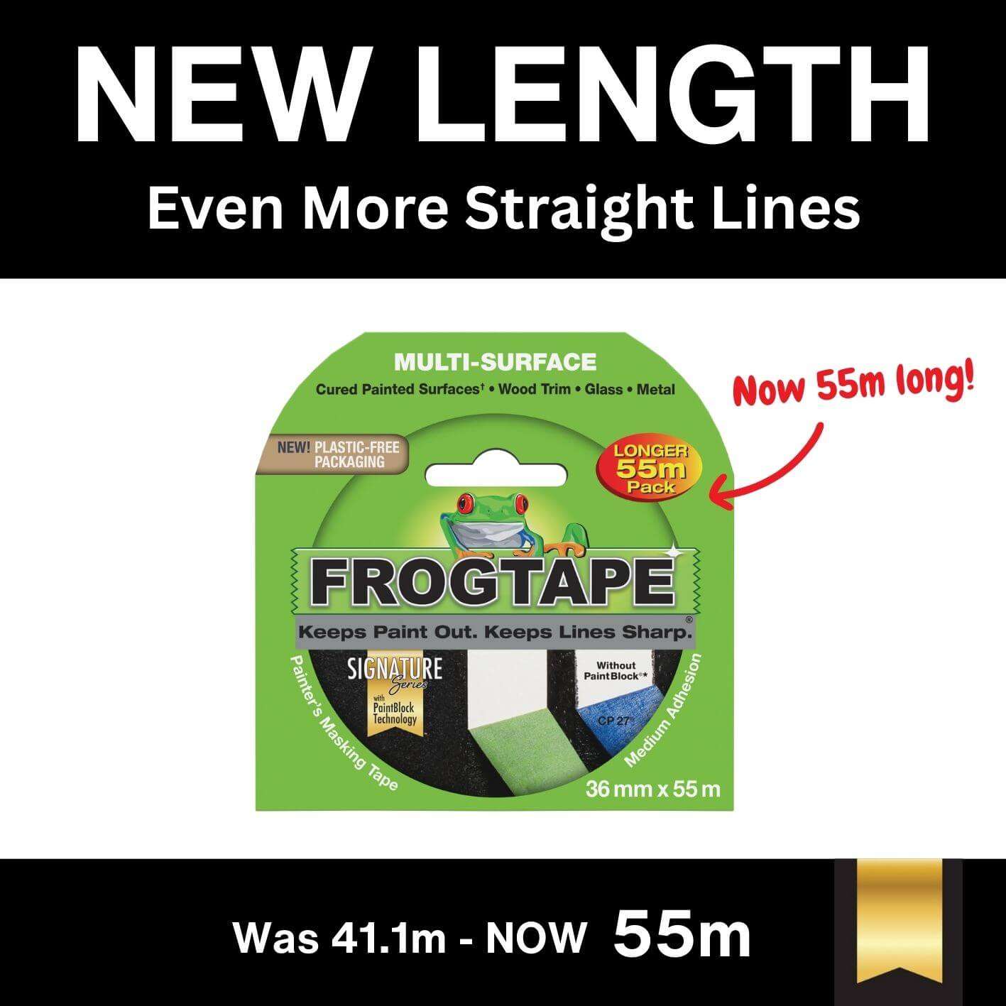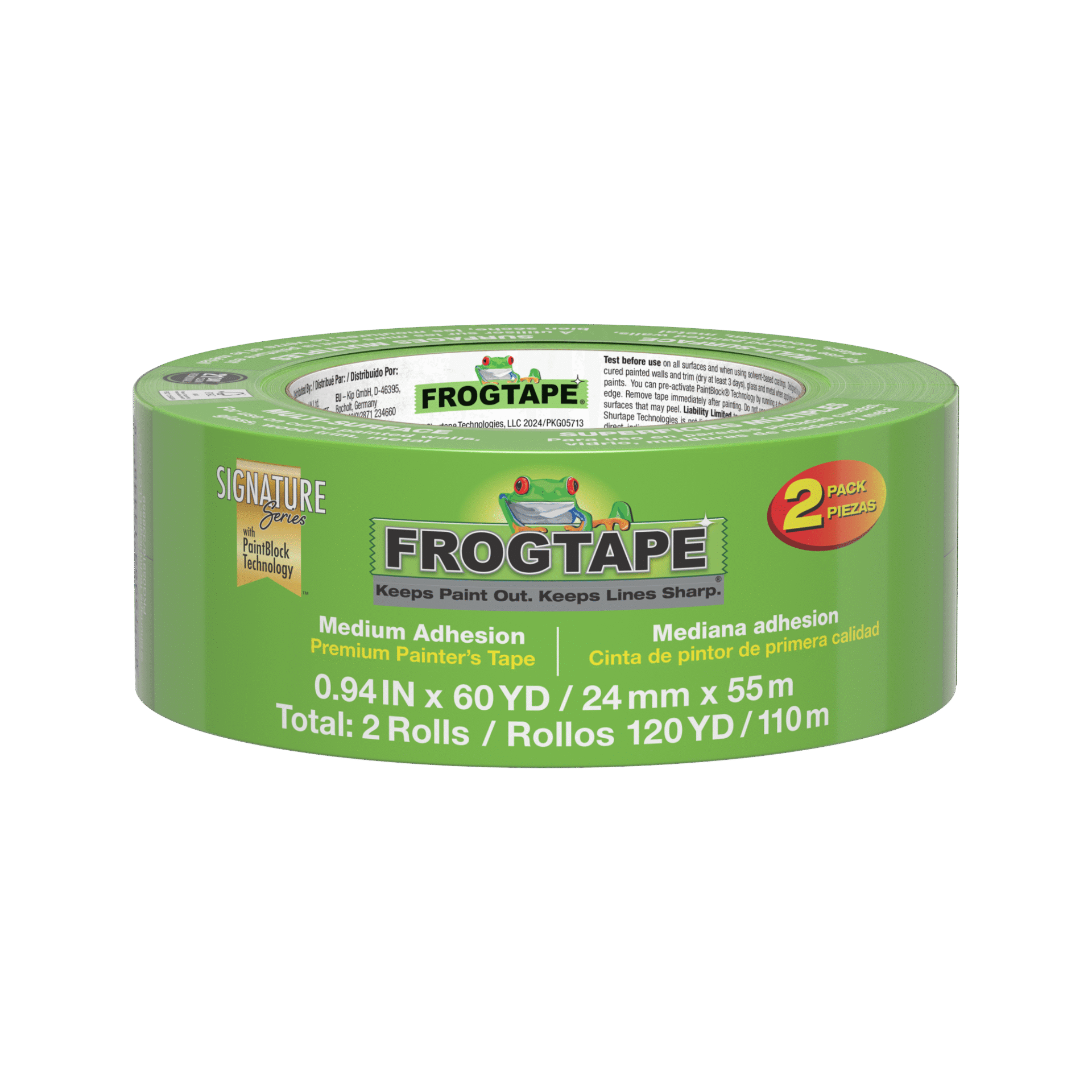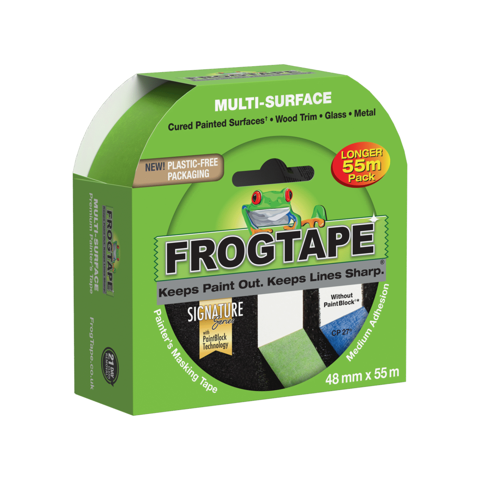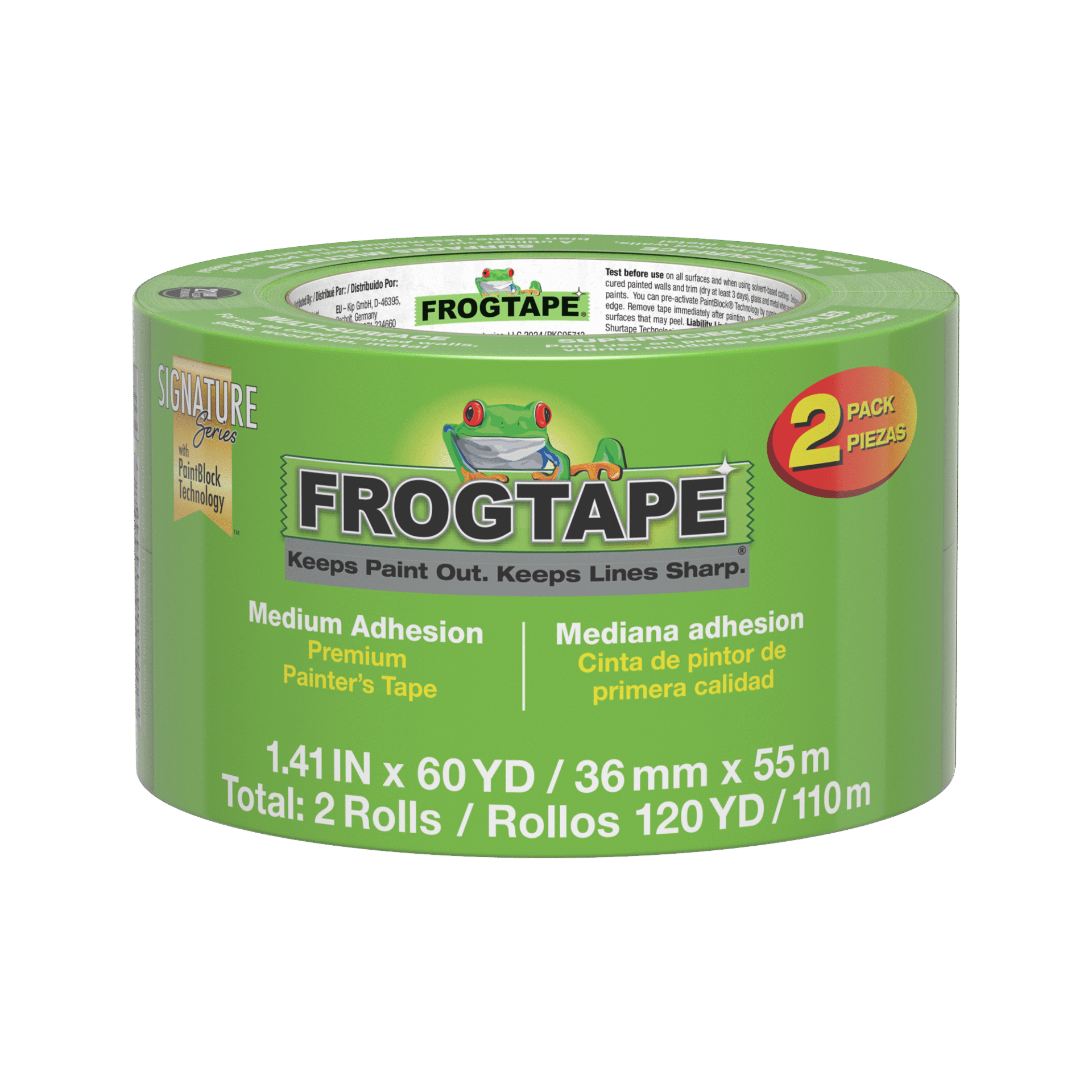 FrogTape® Multi-Surface is a premium, medium adhesion painter’s masking tape that helps you achieve crisp, clean paint lines and saves time and money by eliminating the need for touch-ups.